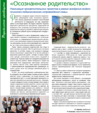 В октябрьском номере федерального журнала для детей и родителей «Дошкольный мир» опубликована наша статья «Осознанное родительство. Реализация просветительских проектов в рамках внедрения модели психолого-педагогического сопровождения семьи». В ней раскрывается двухлетний опыт работы команды педагогов ДОУ в просветительских проектах «Школа осознанного родительства» для семей, воспитывающих детей с ОВЗ и «Родительство без усталости» для семей, воспитывающих детей раннего возраста. В настоящее время проекты продолжают успешно работать, в сентябре они открыли двери для новых участников. За их работой можно наблюдать на сайте ДОО и на странице ВКонтакте